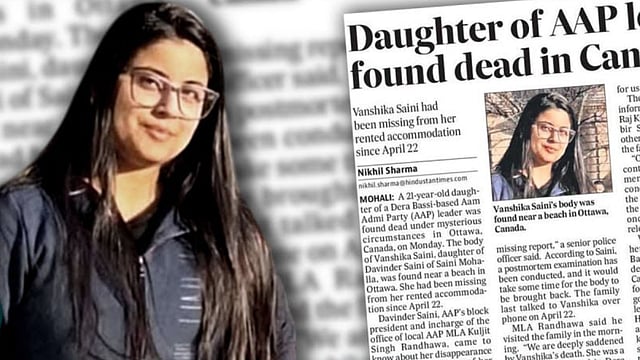The shocked family of a 21-year-old Indian student, who was found dead in Canada's Ottawa, on Tuesday urged the Centre for assistance in bringing back her body to Punjab. Vanshika Saini was found dead three days after she went missing. She is the daughter of Aam Aadmi Party leader Davinder Saini in Punjab's Mohali district. Vanshika had gone to Canada two years ago to pursue higher studies after completing her senior secondary in Dera Bassi. Her father said she had always been a topper in her school and wanted to do something big in her life. Davinder said he did not know what happened to her, adding that the family was told that the cause of death could be known only after a postmortem examination. "It is a great loss for the family and a tough time for us," said Davinder, who is the AAP's block president and is associated with AAP MLA from Dera Bassi Kuljit Singh Randhawa. "I want that my daughter's body be brought back here," he said.