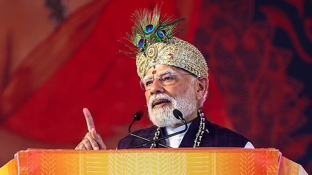 Earlier, Modi visited the historic Kanaka Mantap, here and offered floral tributes to Kirthanakar Kanakadasa, the revered 14th-15th century AD saint-philosopher. Kanakadasa is credited with the legendary episode of Lord Krishna's idol turning westward at the Udupi Sri Krishna Temple. Later, the Prime Minister participated in the "Laksha Gita Pathana" accompanied by Paryaya Puthige Math seer, Sugunendra Thirtha, Karnataka Governor Thawarchand Gehlot and others. The PM read out the hymns. Modi also offered prayers at the Sri Krishna Temple, where he was received with traditional honours by Sugunendra Thirtha, along with the Diwan of the Math and senior temple officials. The PM spent time inside the sanctum precincts, acknowledging the significance of Kanakadasa's devotion and the enduring cultural legacy associated with the temple. He was given a Poorna Kumbh swagatham (welcome with traditional honours) as he entered the Krishna Math precincts. He was presented with a silver clad Tulasi Japa maala and Mudras containing Shankha, Chakra , Gada, and Padma, which the Madhwas and most of the Brahmin communities use for their daily Pooja rituals in South India. Modi had visited the Krishna temple in 2008 when he was the Chief Minister of Gujarat. Even then, the same Swamiji was the administrative head of the Krishna Math. Upon his arrival at the temple town, Modi held a grand road show. The PM landed at the Mangaluru Airport and proceeded to Udupi by a helicopter. Standing on the running board of his vehicle, Modi waved at the enthusiastic gathering, which showered his convoy with flower petals. Modi reciprocated by throwing flowers back at the people waiting on either side of the road. Saffron festoons and BJP flags dotted the route. The celebratory atmosphere was further elevated by performances from various cultural troupes that showcased the vibrant traditions of coastal Karnataka.