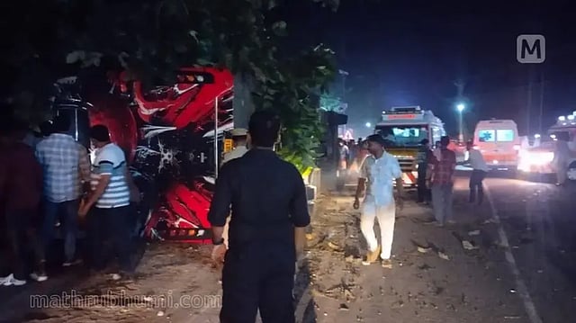 A woman passenger died and 49 others were injured after a tourist bus lost control and overturned at Cheenkallel here in the early hours of Monday, police said. The deceased has been identified as Sindhu, a native of Peravoor in Iritty, Kannur district. According to the police, all passengers were from Iritty and were returning home after visiting Kanyakumari and Thiruvananthapuram. The accident occurred around 1 am when the bus, while negotiating a curve on the MC Road stretch near Cheenkallel Church, lost control, overturned, and crashed into a tree.
