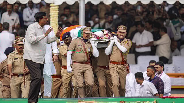The last rites of Maharashtra Deputy Chief Minister Ajit Pawar, killed in a plane crash, were held with full state honours on Thursday at Baramati in Pune district. Union ministers Amit Shah, Nitin Gadkari, former Union minister Sharad Pawar and BJP president Nitin Nabin attended the 66-year-old Nationalist Congress Party (NCP) chief’s funeral at the Vidya Pratishthan ground at Baramati, around 100 km from Pune. Maharashtra CM Devendra Fadnavis and Deputy CM Eknath Shinde were also present, along with Ajit Pawar's wife Sunetra, who is a Rajya Sabha member, and sons Parth and Jay. Ajit Pawar's cousin Supriya Sule, Lok Sabha member from Baramati, and NCP working president and former Union minister Praful Patel were also present. Thousands of people gathered for Ajit Pawar's last rites chanted "Ajit Dada amar rahe", when his mortal remains, draped in the national flag, were brought from his village Katewadi to the Vidya Pratishthan ground.
