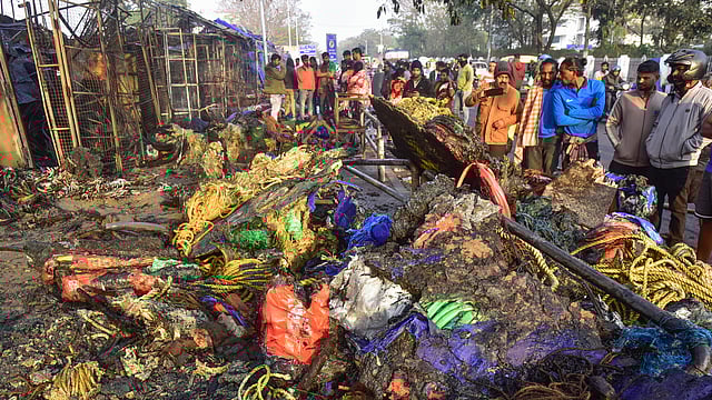 Over 40 shops were gutted and goods worth lakhs of rupees were destroyed in a major fire at Unit-I Haat in Bhubaneswar early on Tuesday, police said. The fire broke out around 1.30 am and over 13 fire tenders and 80 personnel took hours to douse the inferno, they said, adding no casualty has been reported so far.