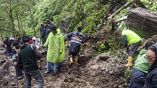 At least three persons died and six security personnel went missing after a landslide hit a military camp at Chhaten in Sikkim, a defence official said on Monday. The landslide, which occurred at 7 pm on Sunday, was triggered by heavy rainfall in the area, he said. Three bodies have been recovered, while four individuals were rescued with minor injuries, the defence official said in a statement. "Rescue teams are working round the clock under challenging conditions to locate the six missing personnel," he said. Sikkim has been battered by heavy rain in the last few days.