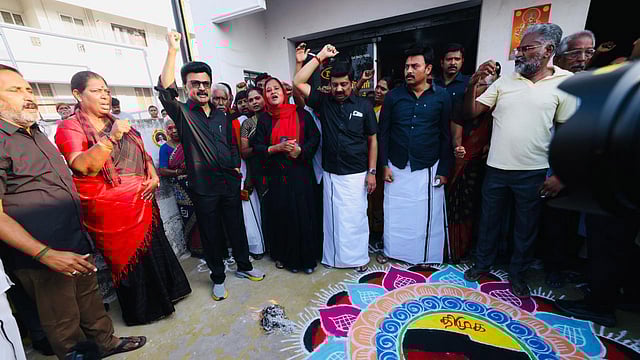 Tamil Nadu Chief Minister M K Stalin on Thursday burnt a copy of the delimitation bill and dubbed it a "black law", alleging it seeks to make the Tamil people "refugees" in their own land. Stalin hoisted a black flag and burnt a copy of the bill on delimitation circulated by the union government and raised slogans condemning the move, hours before the Parliament was to sit for a special session. The CM burnt the copy of the bill at Namakkal in western Tamil Nadu, where he is camping in connection with electioneering. "Poradavom, Velvom ondraga" (Let us struggle, win together) was among the slogans raised by Stalin and others clad in black. In a statement, Stalin said: "Let the flames of resistance spread across Tamil Nadu. Let the arrogance of the fascist BJP be brought down. Then, the fire of resistance against Hindi imposition that rose from Tamil Nadu scorched Delhi. It quietened only after Delhi was forced to yield." He was apparently referring to the anti-Hindi agitation in the 1960s in the state. "Today, I have reignited that fire by burning the copy of this black law and hoisting the black flag against this black law that seeks to turn Tamils into refugees in our own land. This fire will now spread across the Dravidian land. It will rise, it will rage, and it will bring the BJP's arrogance to its knees," he added.