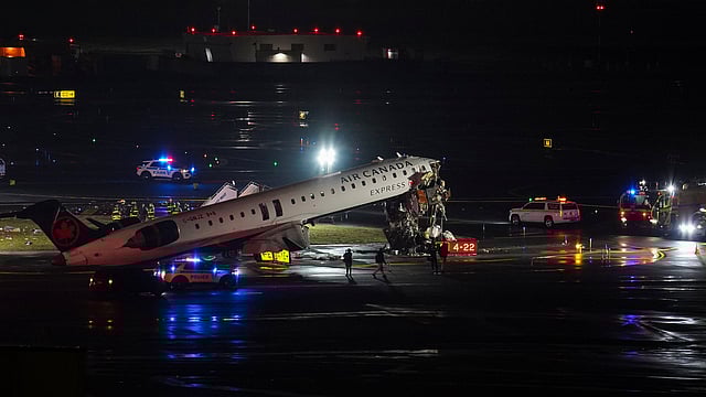 An Air Canada flight collided with a Port Authority vehicle after landing at LaGuardia Airport, according to authorities. The New York Police Department confirmed the collision but could not immediately offer additional information. A spokesperson for the New York City Fire Department said firefighters responded to reports of a plane that crashed into a vehicle on the runway at 11:38 p.m. Additional information was not immediately available. Multiple videos taken by bystanders and posted on social media showed the jet with severe damage to the front of the aircraft.