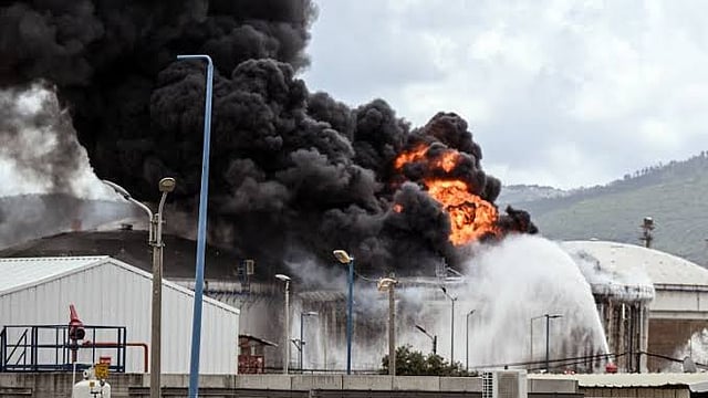 The report said that firefighters were working to contain the blaze but no one had been hurt.
