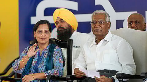 Addressing the INDIA bloc rally here at Jantar Mantar, Sunita Kejriwal alleged that her husband was framed in the excise policy case on the basis of one statement.